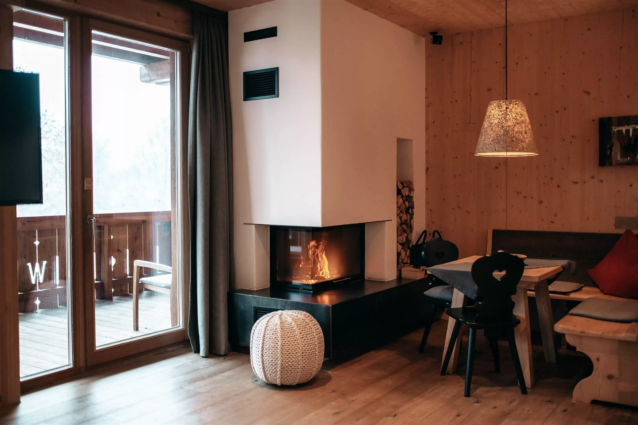 Ganz oben, im 4. Stock liegt unsere Top Suite. Mit großzügiger Dachterrasse, Privatsauna und Hot Pot. Das King-Size-Bett bietet einen phänomenalen Blick durch die große Fensterfront auf den / Berg der Berge /. Aufwachen mit Panorama Aussicht inklusive.
