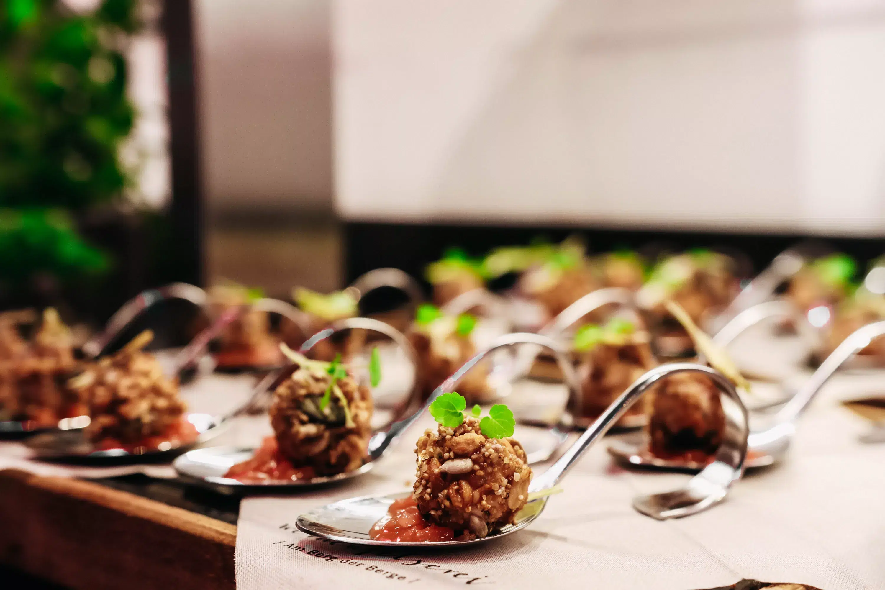 An diesem Abend wird die Küche zum Mittelpunkt. Und sie bleibt nicht dort, wo man sie erwartet. Sie zieht hinaus ins ganze Erdgeschoss. In der Lobby werden Speisen zubereitet, im Restaurant wird geschlemmt. Und je nach Wetterlage glüht draußen auf der Bachterrasse der Grill.