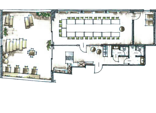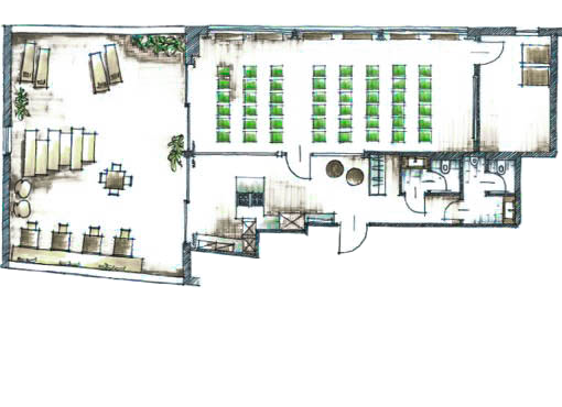 65 m² Innenraum | 68 m² Dachterrasse | 33 m² Foyer | bis zu 48 Personen